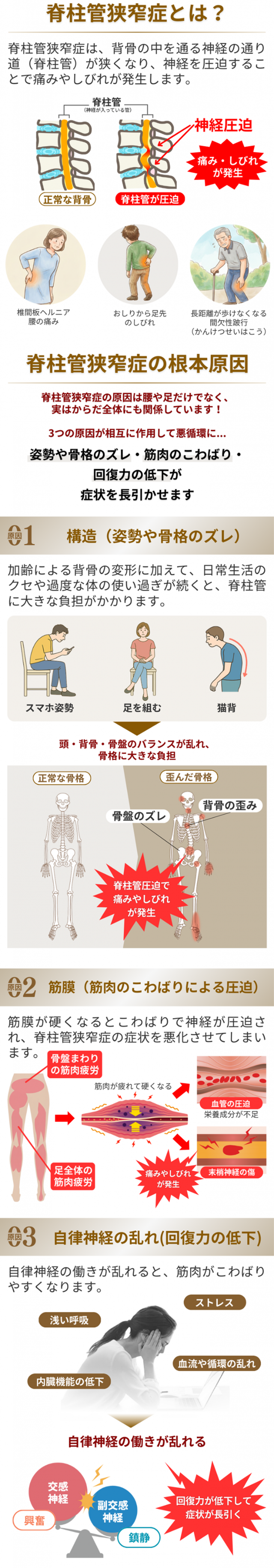 当院では、脊柱菅狭窄症の原因を